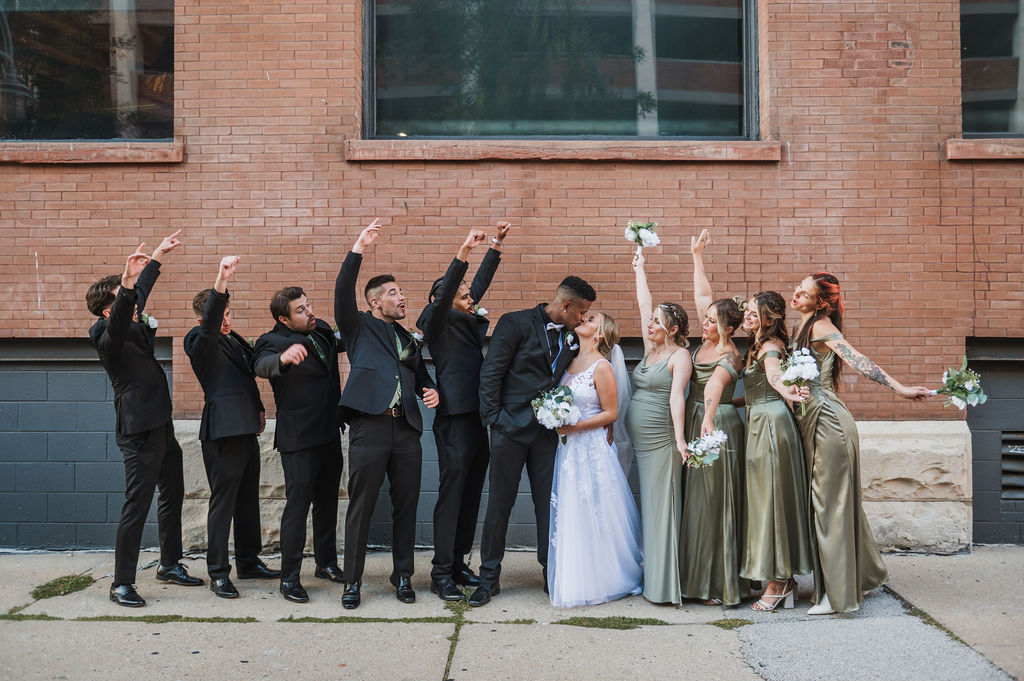 Both bridesmaids and groomsmen showed up and out during portraits taken in downtown Milwaukee and by the Riverfront.